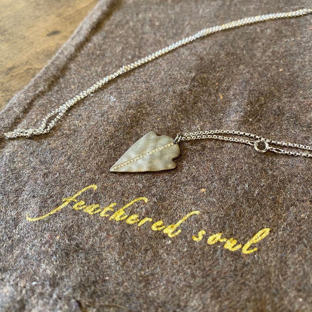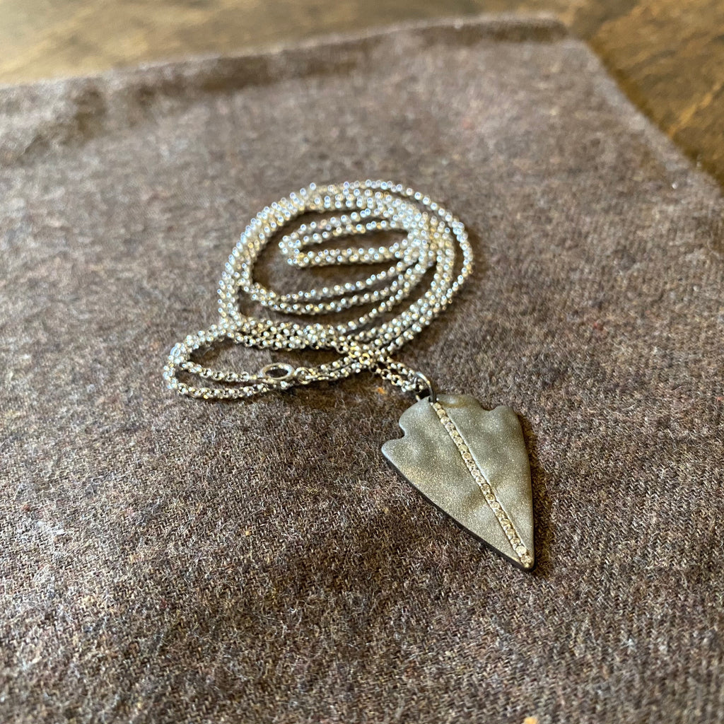 Black Matte Oxidized Sterling Silver Arrowhead, with Pave Diamonds Down Center - on Sterling Silver Chain Necklace. 30"