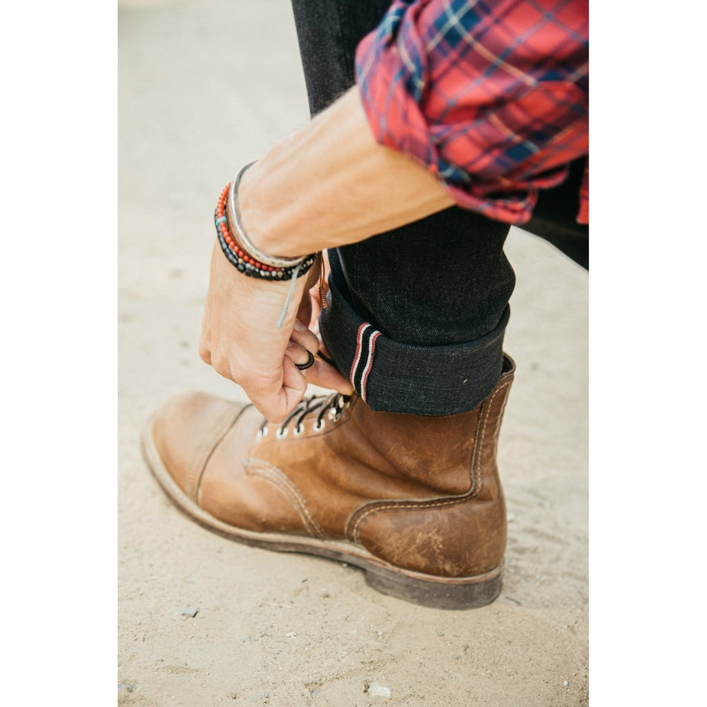 Our premium denim is inspired by the classic vintage blue jean. Our Premium Japanese 4-Way Stretch Selvedge denim story starts in Japan where our fabric is developed at one of the oldest denim mills. We blend a unique 4-way stretch material with selvedge denim to create a specific amount of stretch and comfort you wouldn’t typically get with selvedge denim. This 360 degree of stretch gives the wearer comfort from every angle no matter what they are doing.