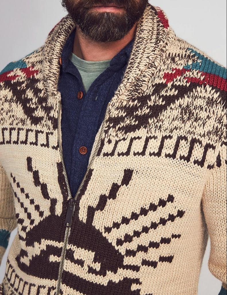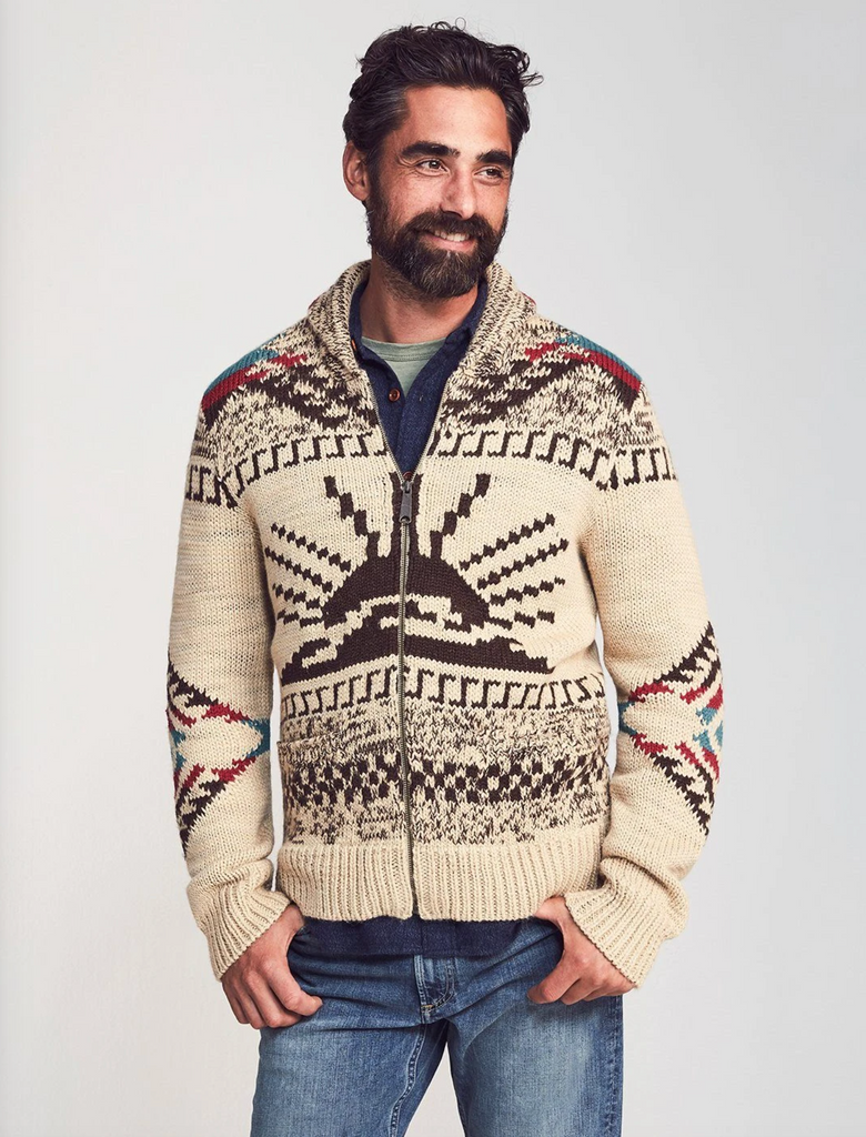 Our signature cardigan sweater inspired by the sun and waves in a lofty alpaca/wool blend. This sweater is one of a kind and the kind of sweater you'll wear forever, like an heirloom piece. Plus, it's warm enough to be a jacket. Finished with antique Talon zippers.