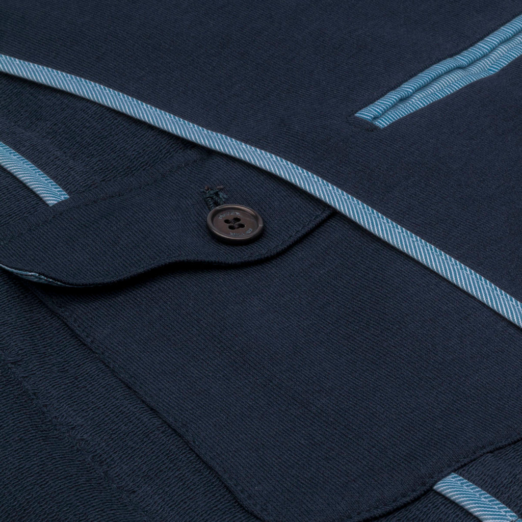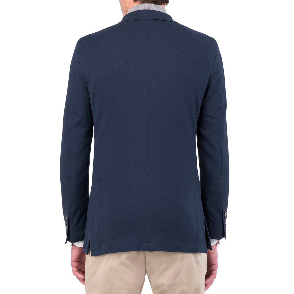The Santorini soft jacket is expertly knit from a rich cotton and silk-blend yarn. This impeccable construction is quarter-lined for movement and superior comfort. Finished with a hand-tacked lapel, genuine horn lapel pin, and barchetta chest pocket for sartorial style. Refined for day and evening wear with jeans or trousers.