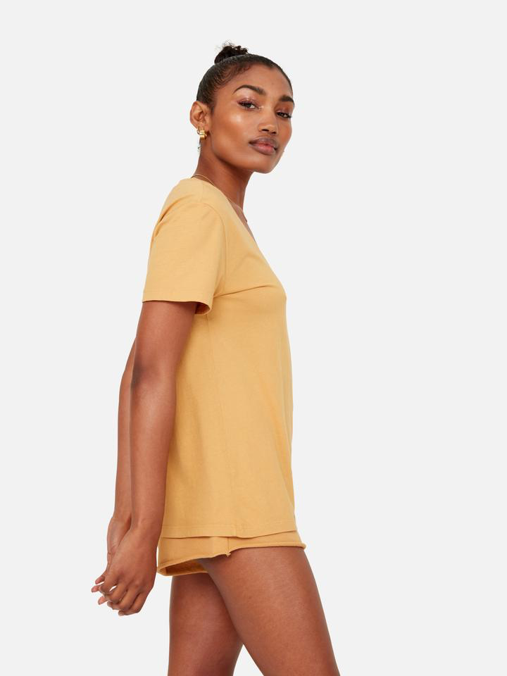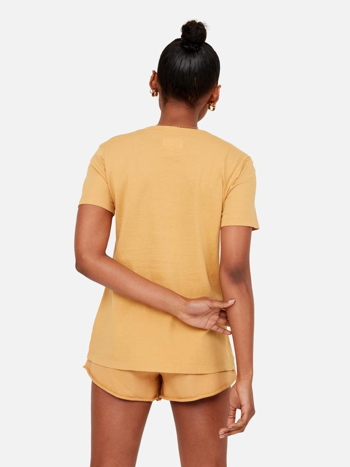 Our relaxed fit classic v neck tee is made with GOTS Organic Cotton Jersey. The Classic V has gone through a special wash to give it that worn-in hand feel.