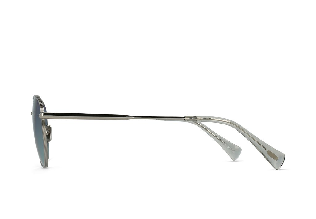 Polished Ridgeline alloy frame, beveled and tapered metal temple design with Polished Fog acetate temple tips. Featuring a tri-band wire rim around the lenses and titanium nose pads.